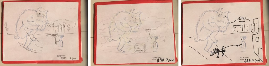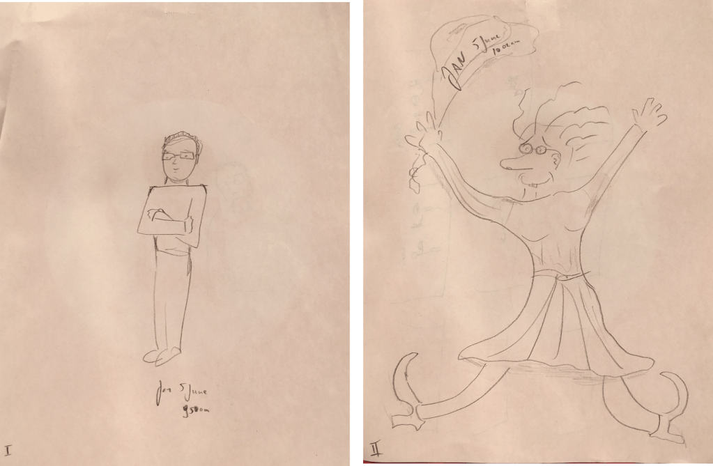 Below some of the drawings we produced, most unfinished drafts scribbled within a short period of time (which frees your mind and forces you to be productive). Without pretending to be being humble, I can say I was as usual the worst artist in class. I was very grateful to learn from my fellow gifted students and much better artists.